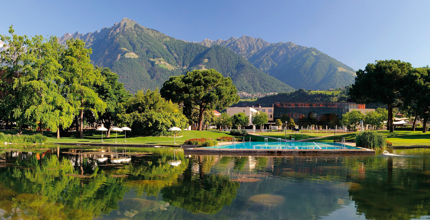 Im Hotel Therme Meran geben Sie mit dem Autoschlüssel automatisch auch Stress, Hektik und Alltag ab. Die mediterrane Kurstadt Meran im Herzen Südtirols ist ein ganz besonderes Fleckchen Erde: Einen Steinwurf vom Hotel entfernt rauscht der Fluss Passer vorbei, über eine Fussgängerbrücke geht es zum Kurhaus und auf die Promenade und dahinter liegen die vielen Laubengassen der Meraner Altstadt. Und über den Wiesen und Dreitausendern lacht die Sonne – über 300 Tage im Jahr.